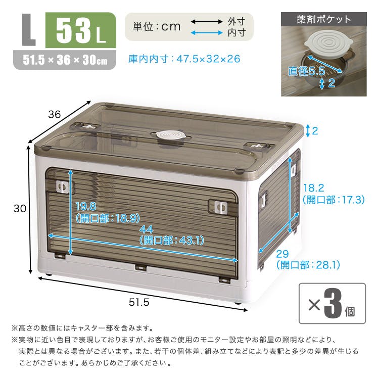 1つあたり(約)W51.5 ×D 36 ×H 30cm(53L)