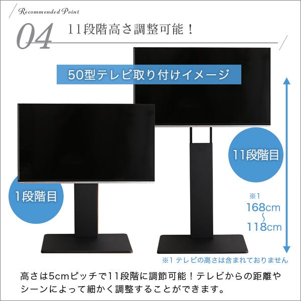 ハイタイプ:10cmピッチで下台から約44cm、約54cm、約64cm、約74cmに設置できます。【テレビ適応表】https://www.hometaste.co.jp/tv-compatibility-2/ご注文前に必ずテレビ適合表をご確認いただいた上で注文をしていただきますよう、よろしくお願いいたします。※購入後にテレビが対応してなかったなどの理由で返品対応は出来かねます。