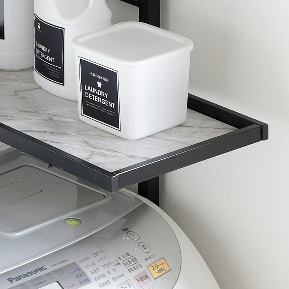 ■組立工具不要 ■防水パンの上にも専用パーツで設置可能 ■棚板の高さは、使用シーンに合わせて調節可能 ■狭い場所、洗濯機の背面、側面、天井に段差がある場所でもスキマを利用して設置ができる