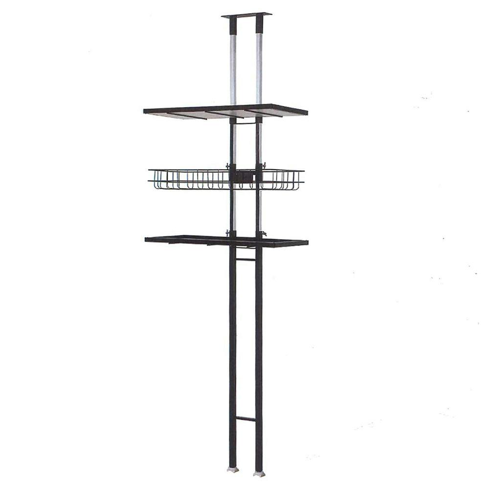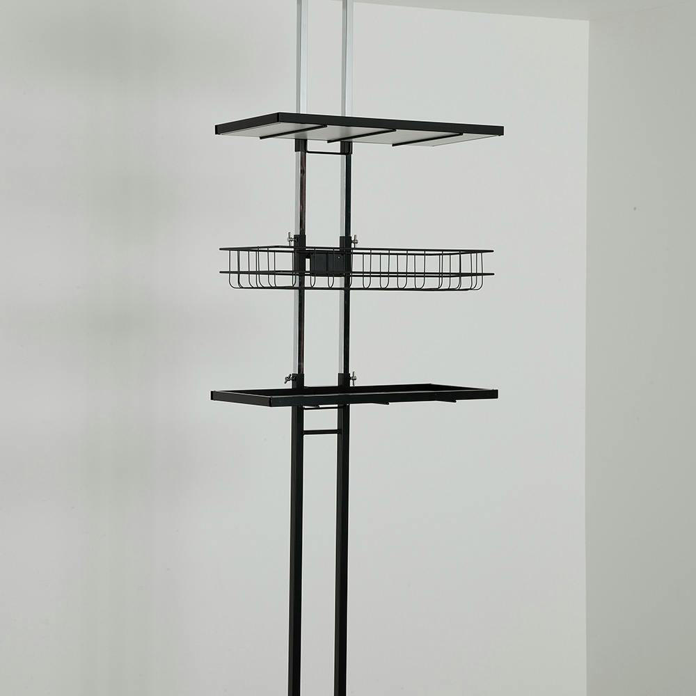 OVITAS 突っ張りロータイプラック棚2段+バスケット1杯 58×32×145.0~208.0cm ブラック 収納 ランドリーラック オープンラック 2750043【別送品】