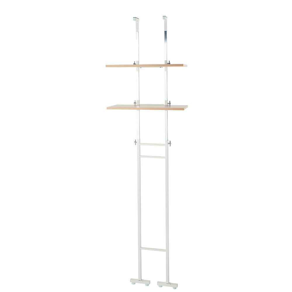 OVITAS 突っ張りランドリーラックロータイプ棚2段 50×35×135.0~208.5cm ホワイト×ナチュラル 収納 ランドリーラック オープンラック 2750098【別送品】