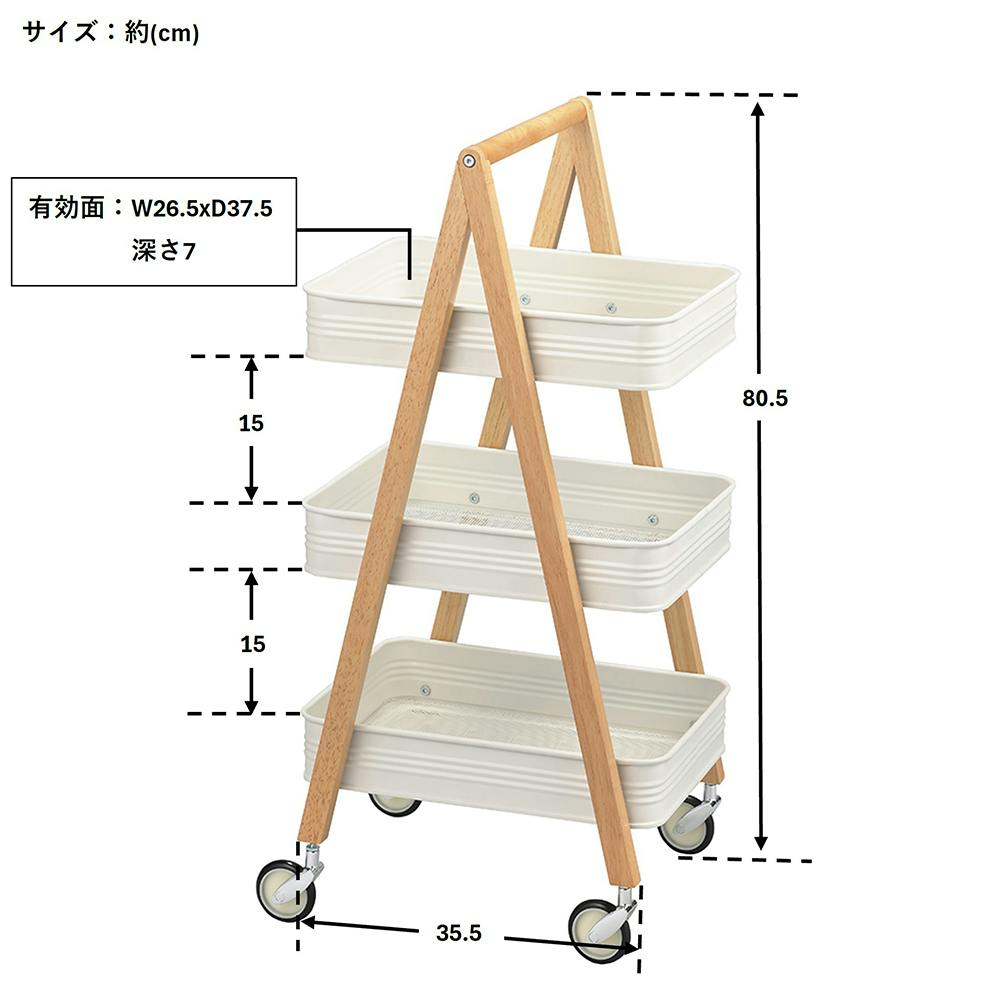 • OVITAS 3段ワゴン 34×41×80.5cm ホワイト 収納 キャスター付き おしゃれ 2750113【別送品】