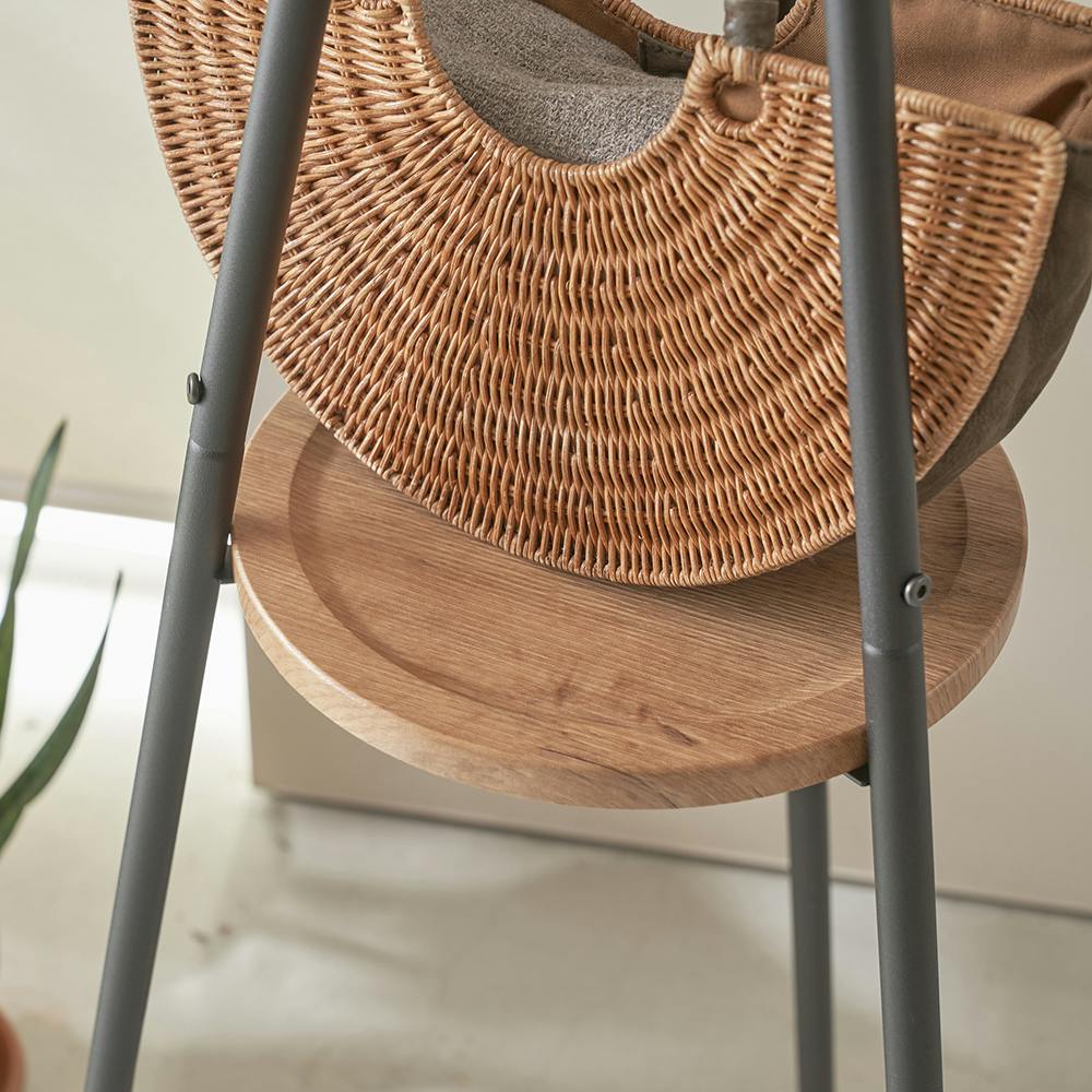 本体:スチール(粉体塗装) 棚:合成樹脂化粧繊維板 フック先端:天然木(ラッカー塗装) 台湾製