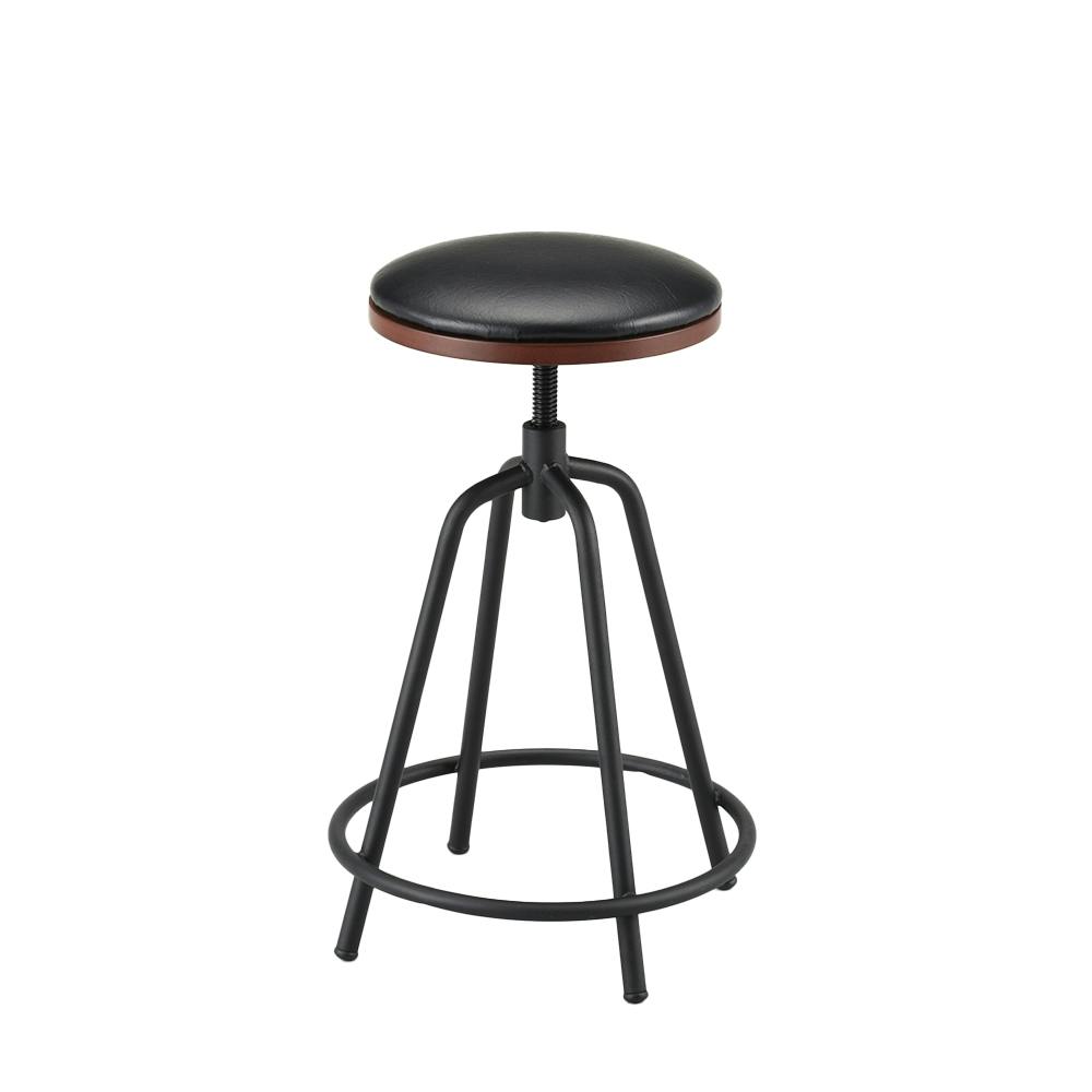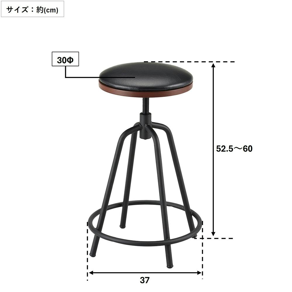 ■便利な高さ調整機能付き ■黒一色ではなく、座面の木板をみせることでフローリングやナチュラルなインテリアとも親和性が◎ ■座面径は約30.0cmと大きすぎないスリムなサイズ感です ■ザラついたマットなフレームが、高級感とインダストリアルな印象を与えます