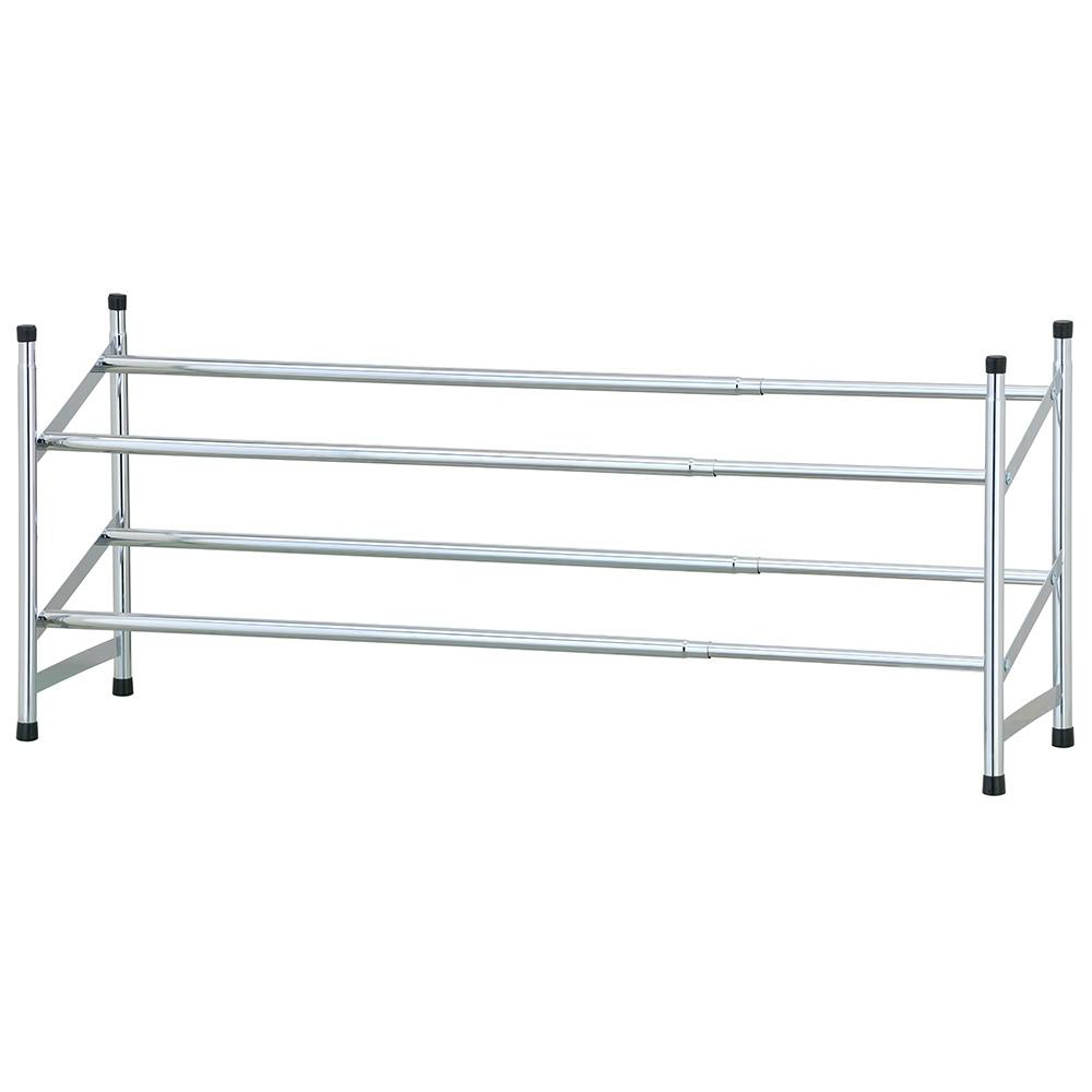 ■スライドするだけで大容量収納に ■設置場所や靴の量に合わせて伸縮できるシューズラック2段タイプです ■ニオイや湿気がこもらず快適にお使いいただけます ■2台で重ねて使用することも可能です