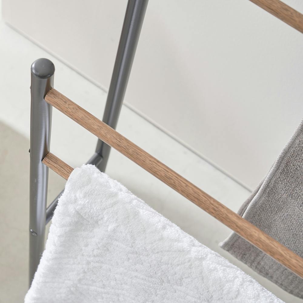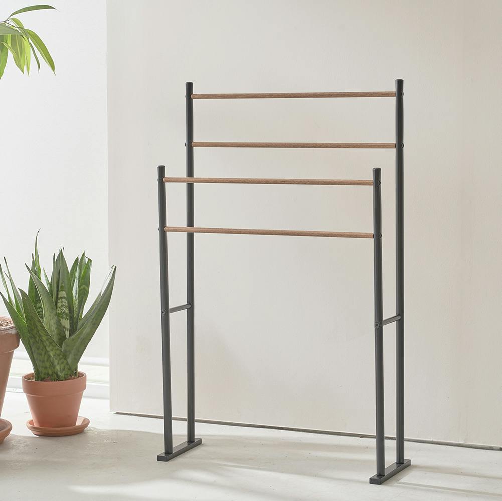 ■工具不要で簡単組み立て ■奥行約20.0cmと省スペースで利用可能 ■高さ違いの2段式のため複数枚タオルをかけてご利用いただけます