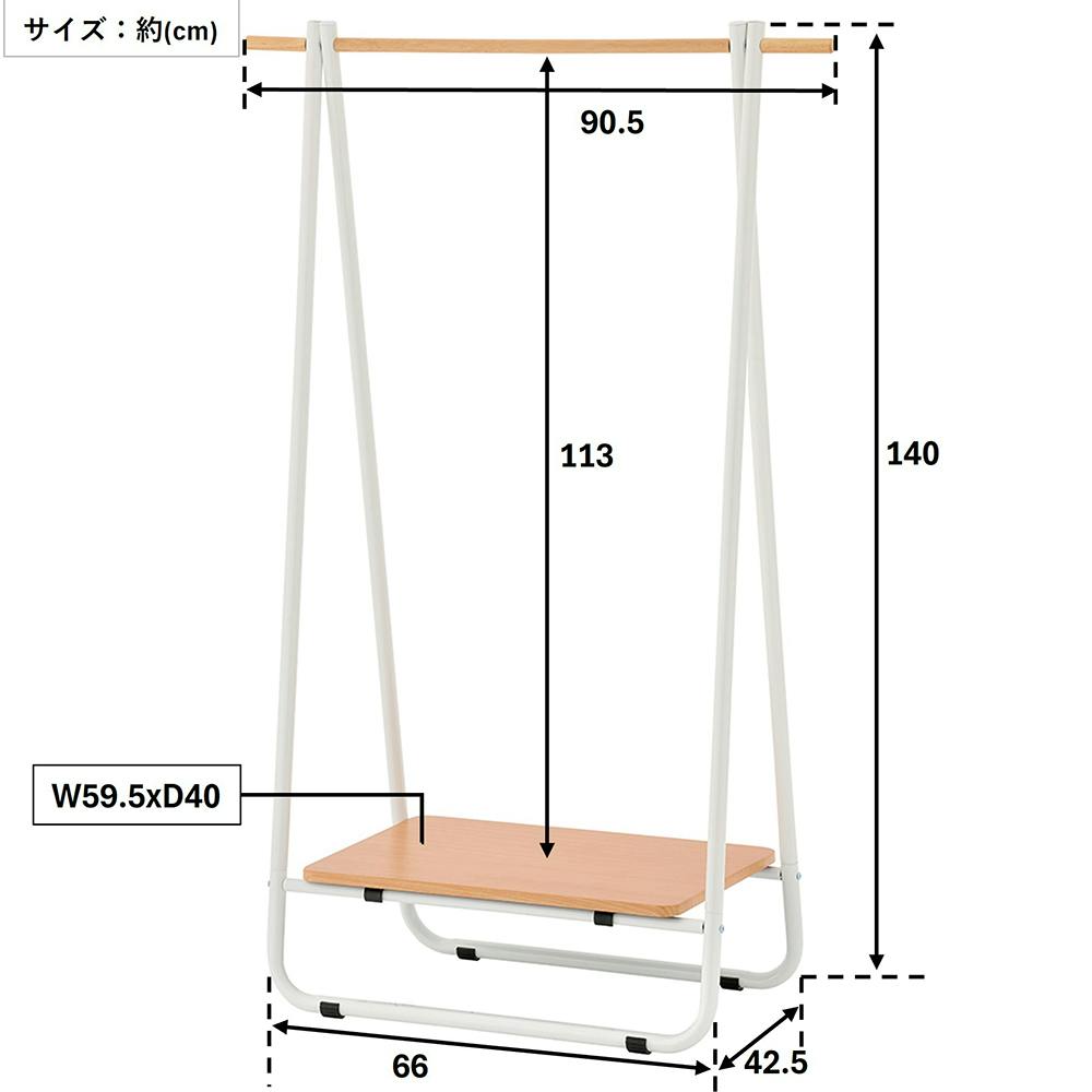 本体:スチール(粉体塗装) ハンガー:天然木(ラッカー塗装) 棚板:プリント紙化粧繊維板 台湾製