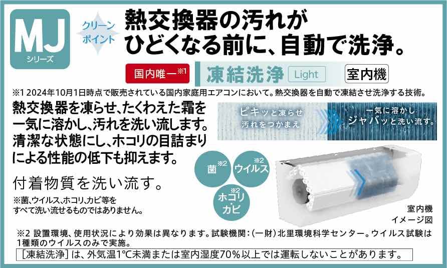 凍結洗浄Light、カビバスター、ステンレスクリーンシステム搭載 エアコンを清潔に