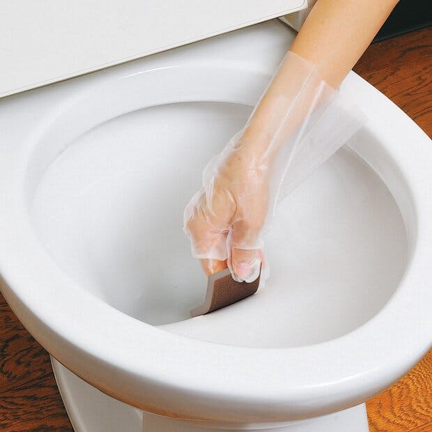 陶器製便器にこびりついた尿石・水アカ・輪ジミをスッキリ落とす。