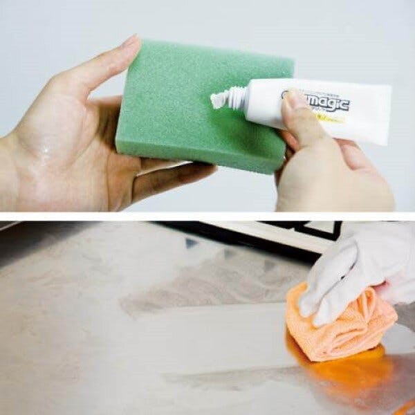 研磨材(40%)・アルミナ系鉱物・界面活性剤(11.5%脂肪酸ナトリウム)・アルカリ剤・金属封鎖剤 液性:弱アルカリ性 日本