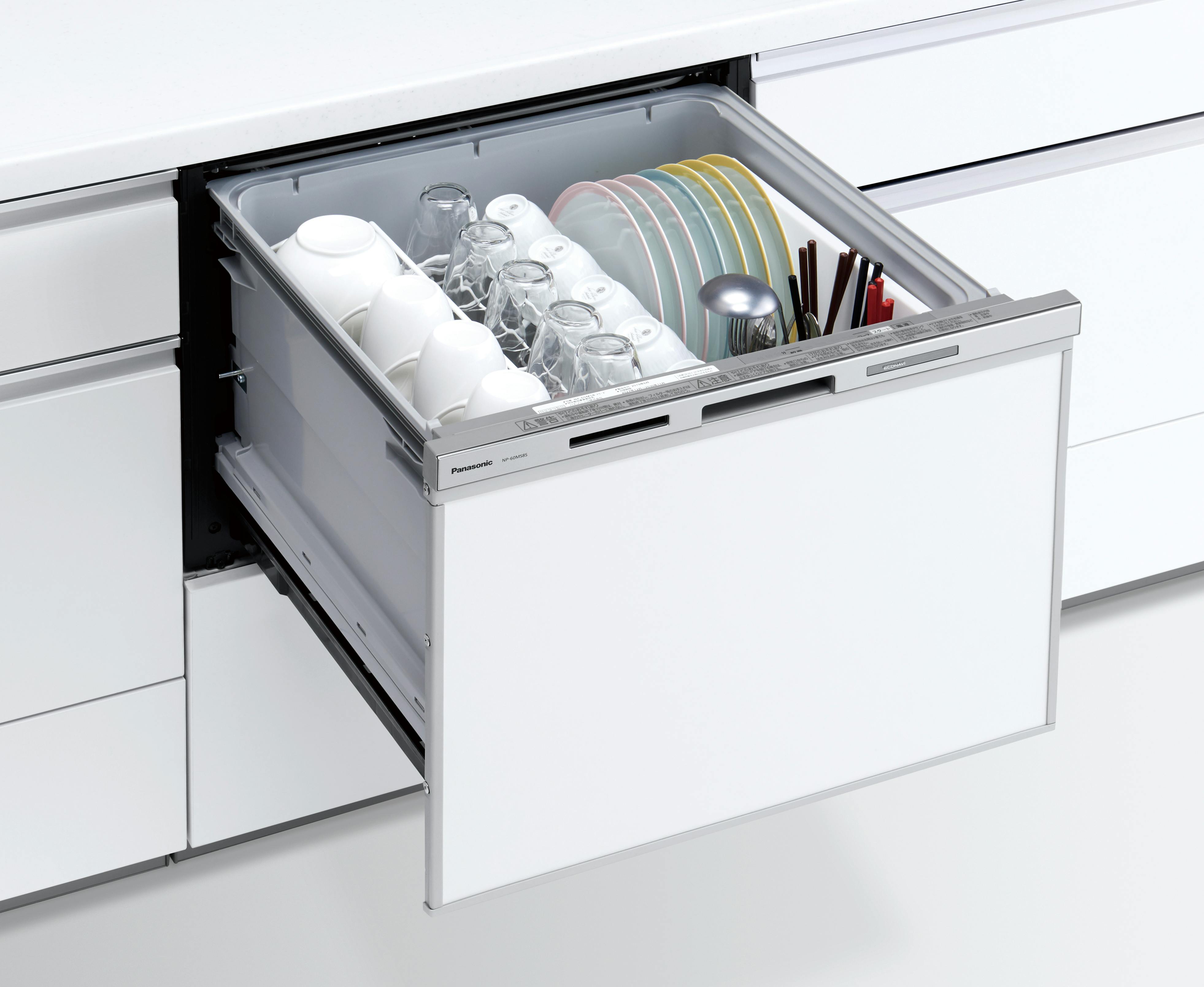 節水、省エネを自動で最適化。膨大なデータを持つパナソニックならではの技術「AIエコナビ」・左右にスライドするムービング機能に加え、洗うものに合わせて4つのスタイルに変えられる上カゴ、「ムービングラックプラス」・4つの洗浄モードを自動ローテーションするセンターノズル搭載の「3Dプラネットアームノズル」・高温・高圧水流で、洗うと同時に除菌もできる「ストリーム除菌洗浄」