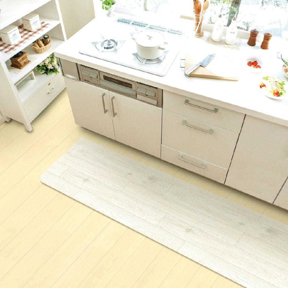 富双合成 リモデルキッチン 微粘着付きキッチンマット 約60cm×240cm ホワイト(オーク) 汚れ 油跳ね キッチン RF548-K24 4961720024126【別送品】
