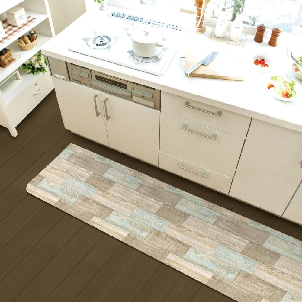 富双合成 リモデルキッチン 微粘着付きキッチンマット 約60cm×240cm ブラウン(ヴィンテージウッド) 汚れ 油跳ね キッチン RF546-K24 4961720024164【別送品】