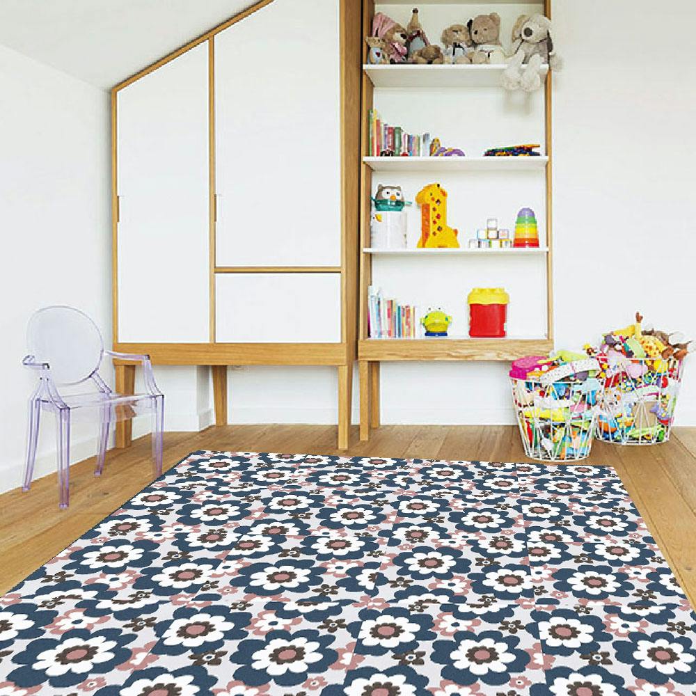 裏面微粘着付きで貼ってはがせる。さっと拭くだけお掃除簡単。抗菌・防カビ・抗ウイルス・消臭機能付き。カーペット調でべたつきにくい特殊エンボス加工をしているので、夏はさらっと、冬はひんやりと感じにくい。
