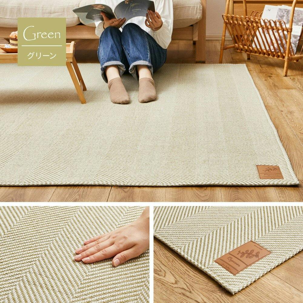 萩原 HAGIHARA 洗えるヘリンボンラグ ボーナ190×240グリーン 240638222【別送品】