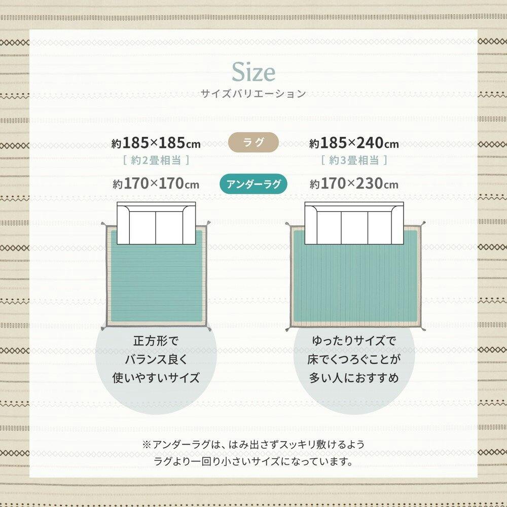萩原 HAGIHARA 薄手で気軽に洗える インド綿ラグ ティック アンダーラグセット185×185ブルー 270092310【別送品】