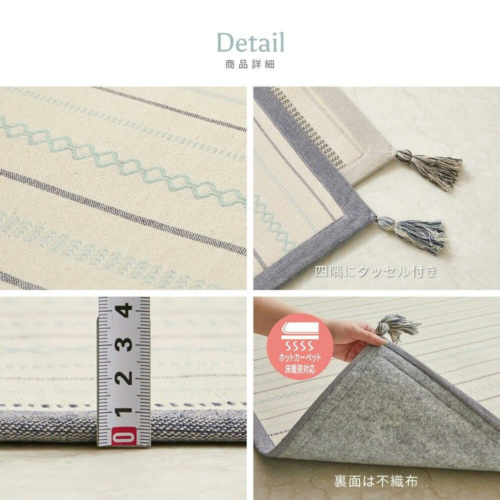 さらっとした踏み心地とインド綿ならではの素朴な仕上がりが魅力のラグ。四隅に付いたフサ(タッセル)でおしゃれ度アップ!吸湿発乾性が良く年中使えるタッチ感もインド綿の人気の秘密です。お客様のご要望に応えて、すべり止め付きを開発しました!●商品の特長・仕様に関する詳細は各メーカーホームページでもご覧頂けます。