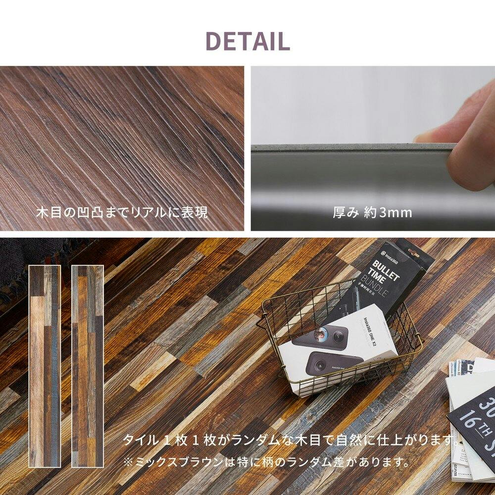 フィルムをはがして何度でもはがせる、木目調フロアタイル。床の上から貼るだけでお部屋をイメージチェンジできます。賃貸や新築の床への汚れや傷の防止にも。カッターで簡単にカットできます。キッチンや洗面所など水周りにも使えて、粘着が落ちても水で洗えば繰り返しご使用いただけます。●商品の特長・仕様に関する詳細は各メーカーホームページでもご覧頂けます。
