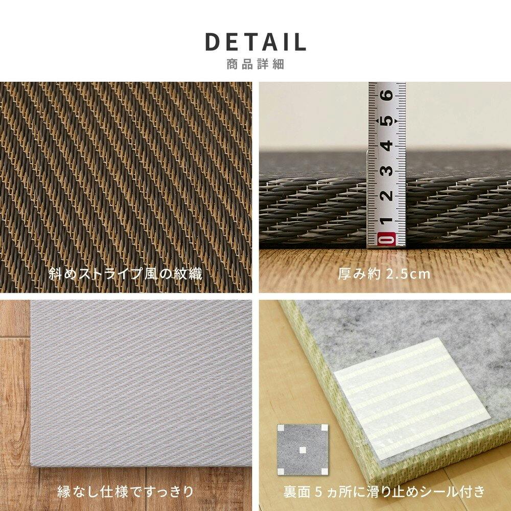 表がPP素材なので、ジュースなどをこぼしてもさっと拭き取れる子どもやペットのいるご家庭におすすめ。軽量で女性1人でも簡単に床に並べるだけで畳スペースが作れる置き畳です。ちょっとした隙間スペースを有効活用できるのでキッズ向けのプレイマットからシニアのお昼寝、お父さんお母さんのごろ寝スペースまで簡単に作れます。適度なクッション性があり、階下への配慮や床のキズ防止など、子育て中にもうれしい便利グッズ。●商品の特長・仕様に関する詳細は各メーカーホームページでもご覧頂けます。