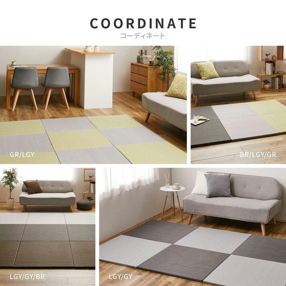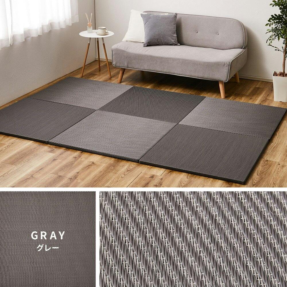 萩原 HAGIHARA 水拭きできる い草風置き畳 綾模様 同色6枚組82×82×2.5グレー 159068000【別送品】