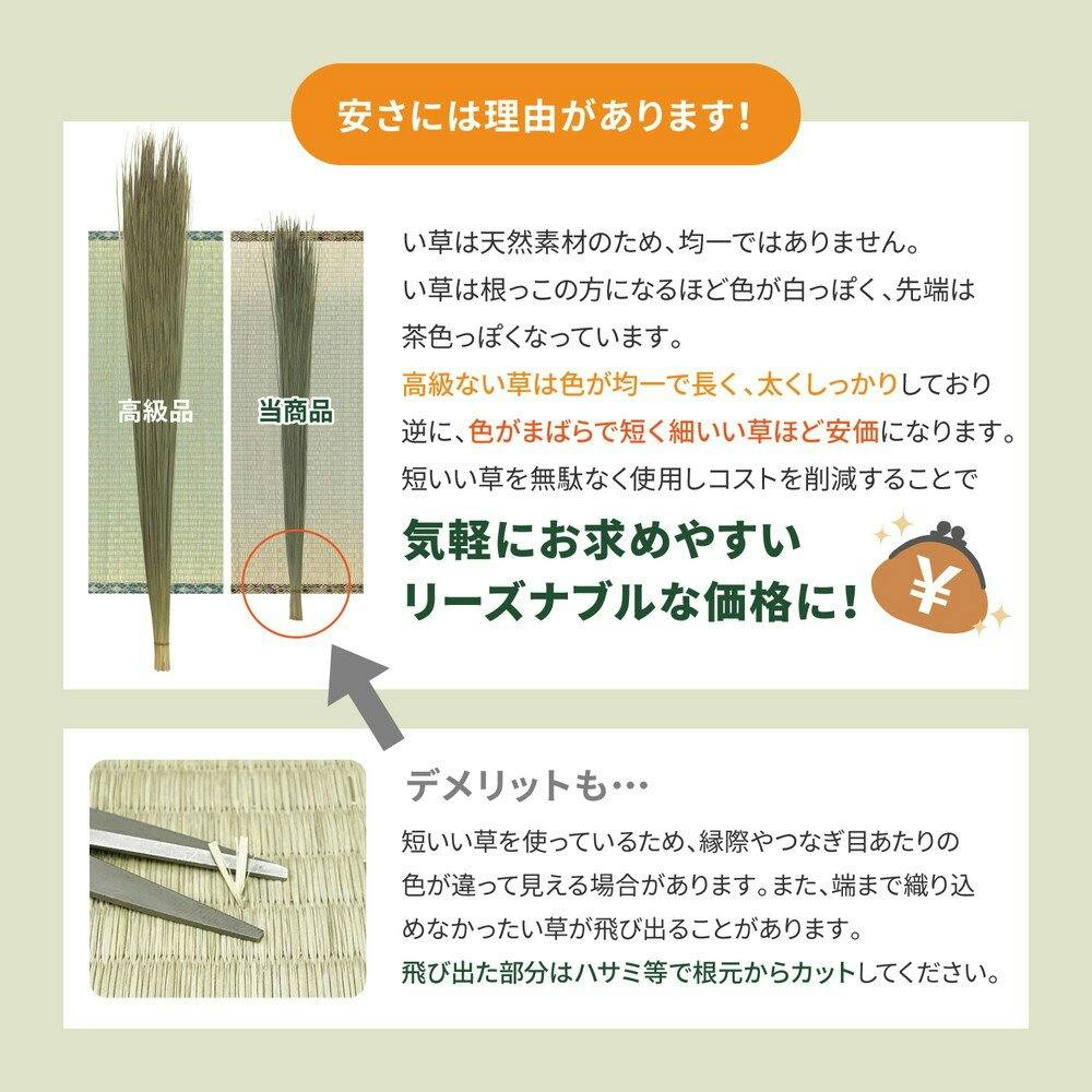 畳の素材である「い草」を気軽に味わうことができる敷き詰めタイプの上敷きです。肌触りの良い双目織です。●商品の特長・仕様に関する詳細は各メーカーホームページでもご覧頂けます。