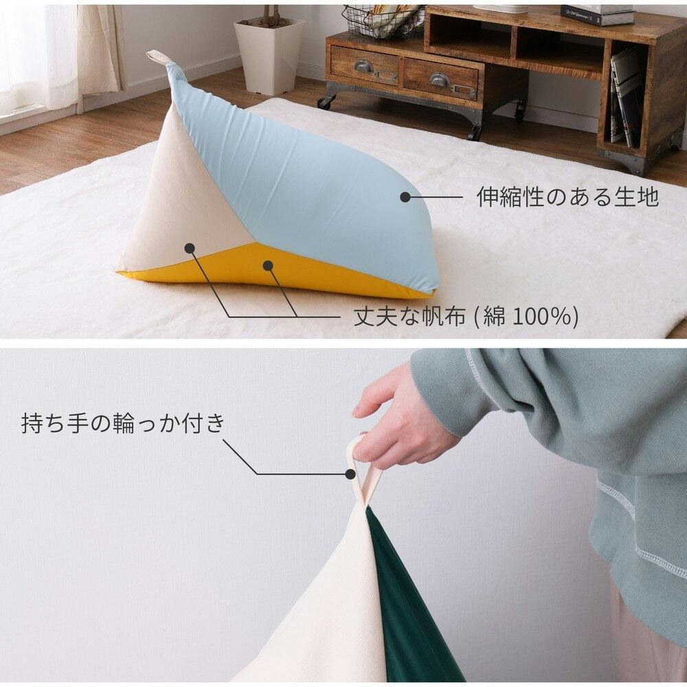うつぶせになったり、座ったり、寝転んだり。生活のルーティンにこれ一個!いろいろ使える三角クッションです。上面は伸縮生地、側面は帆布を使用し、程よい沈みこみで体を包み込んでくれます。細長い形状なので、うつ伏せや寝転ぶ姿勢に最適です。選べるカラーは8色!パーソナルカラーを選んで、移動できる自分だけのくつろぎ空間に。●商品の特長・仕様に関する詳細は各メーカーホームページでもご覧頂けます。
