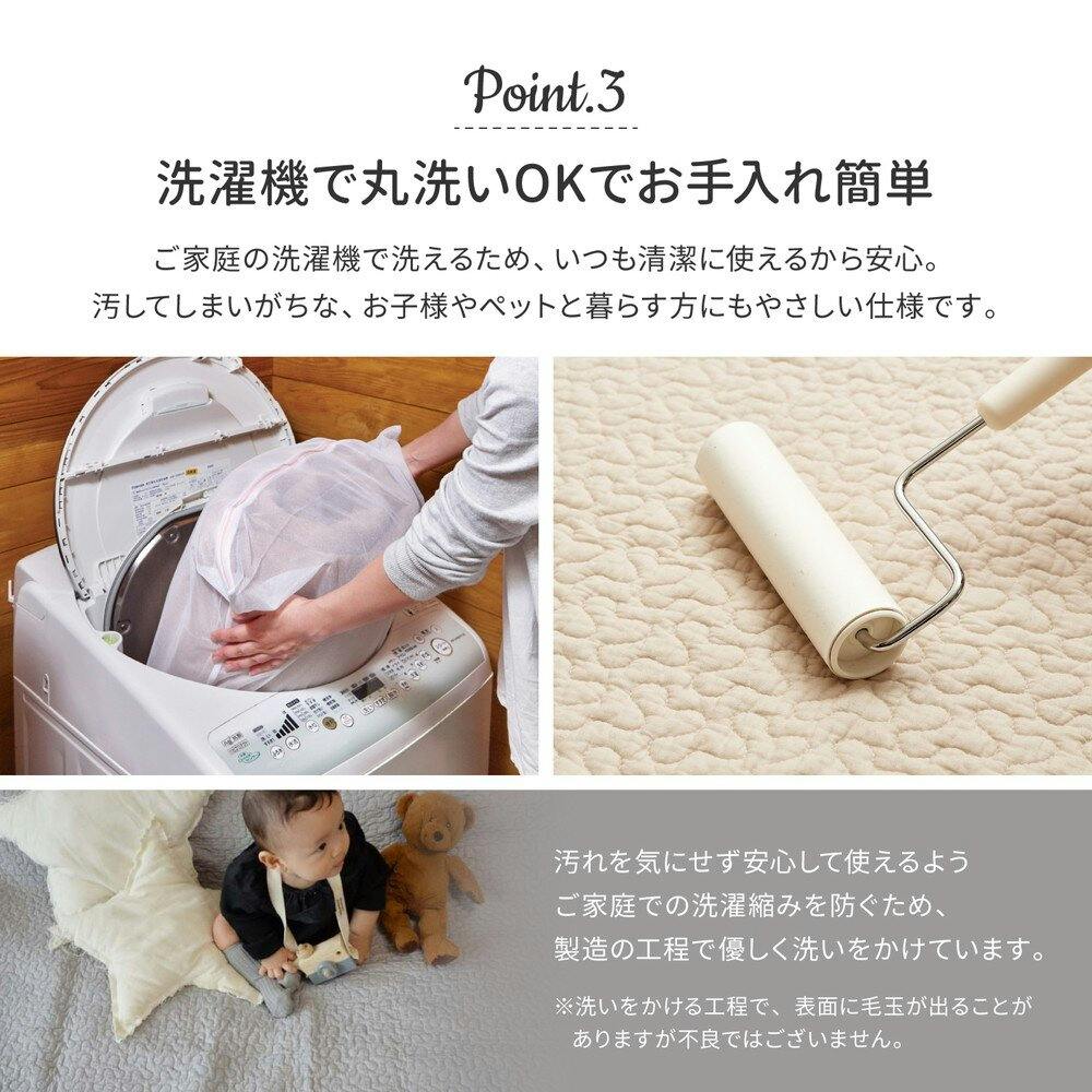 韓国インテリアでおなじみの「イブル」のラグ。コットン100%で赤ちゃんの肌にもやさしく、中綿が入ったキルティング生地でふわっとやわらかな肌ざわり。ナチュラルなカラーでいろんなお部屋に合わせやすく、汚れても洗えるウォッシャブル仕様でいつも清潔に使えます。裏に滑り止めが付いているからズレにくくて安心。