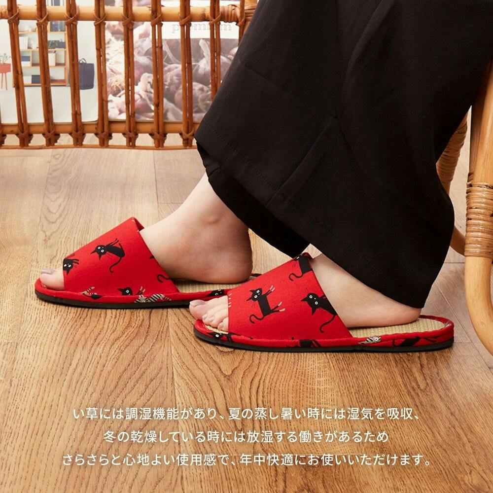 • 萩原 HAGIHARA 国産い草スリッパ モノネコ28cmブラック 81945101【別送品】