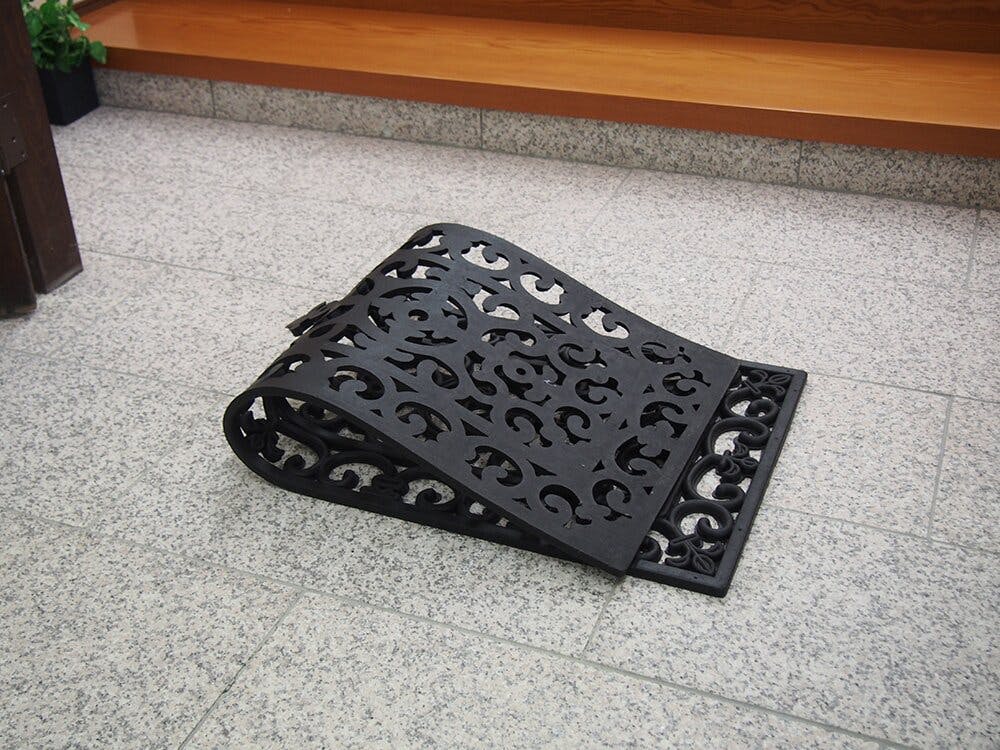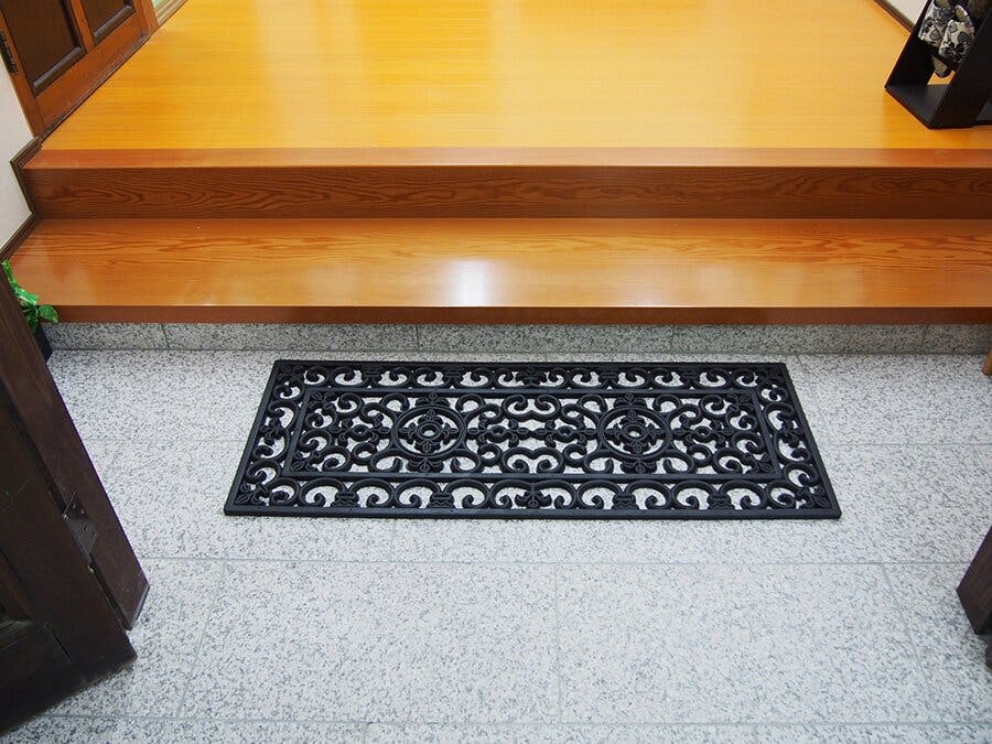 人気の屋外用ラバーマットです。広い玄関にも対応する大きめサイズなので、店舗の入り口にもおすすめです。水洗いできるので汚れても安心。風で飛ばされにくいように重量感もしっかりあります。