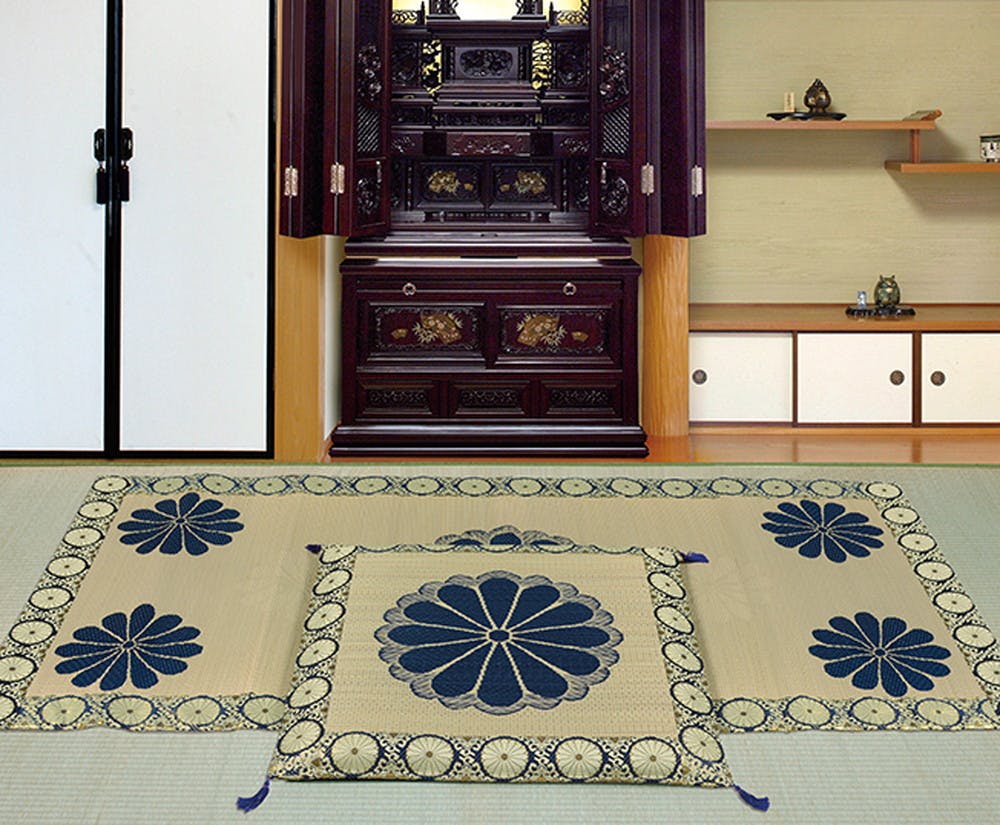 お仏壇の前で日常使われますが、特にお寺様が来る時にはご用意したいものです。夏用にふさわしい座布団をご用意しました。国産い草を100%使用した華やかなご仏前用の座布団です。不織布袋付きです。