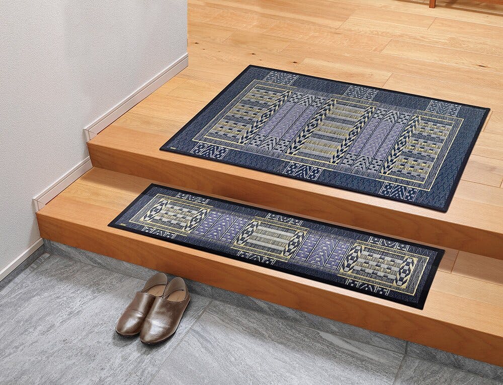 さりげなく季節の彩りを添えてお出迎え。厳選した国産い草で織り上げた重厚感漂う玄関マットです。い草は、湿度の高いときは湿気を吸収し、乾燥した際には蓄えた水分を放出する機能があり汗ばむ季節に最適。さらりとした踏み心地で、からだも気分も涼しくお過ごしいただけます。裏面は、便利な不織布&滑りにくい加工付きです。