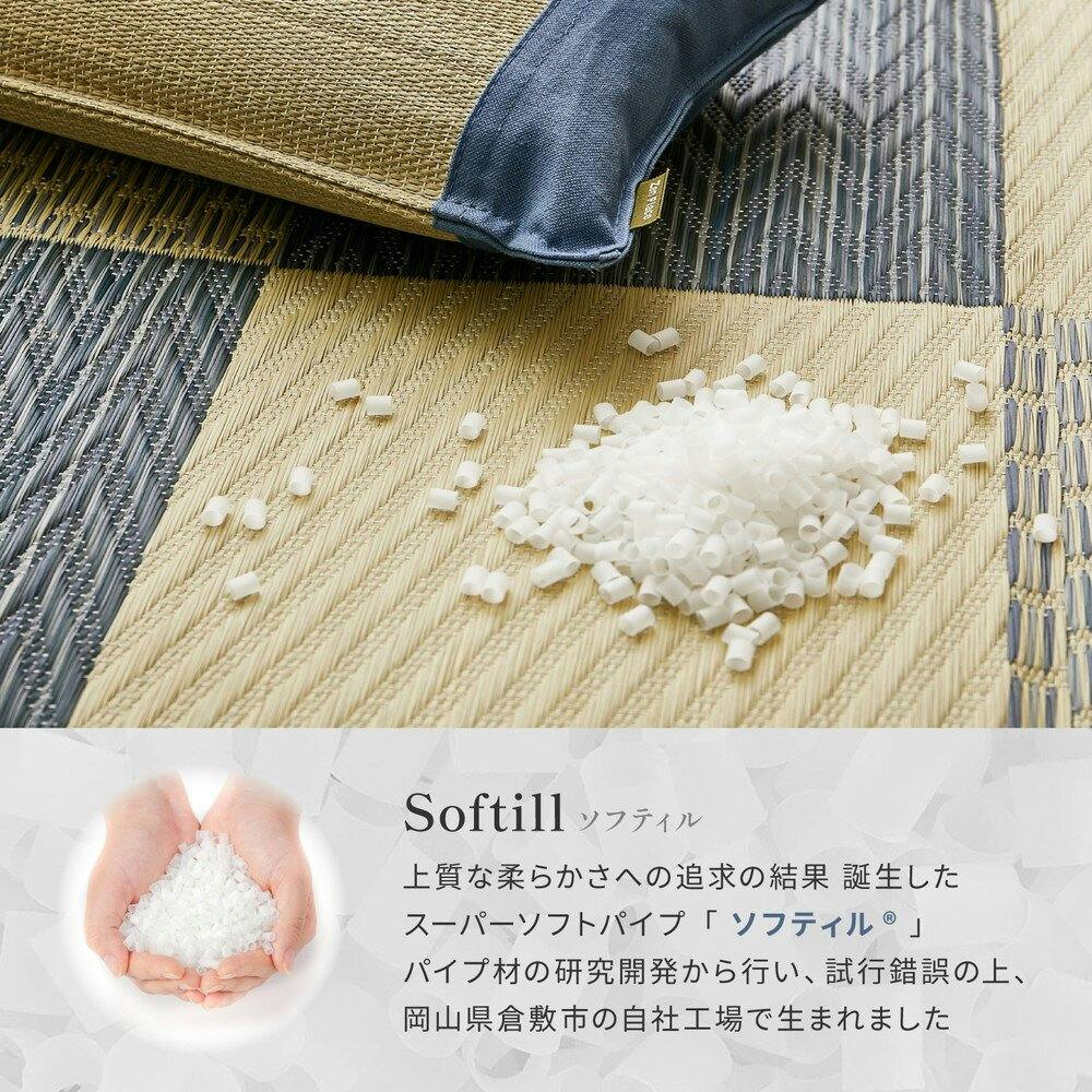 側生地:い草中材:ソフティル(ポリオレフィン系複合樹脂)縁:倉敷帆布 日本