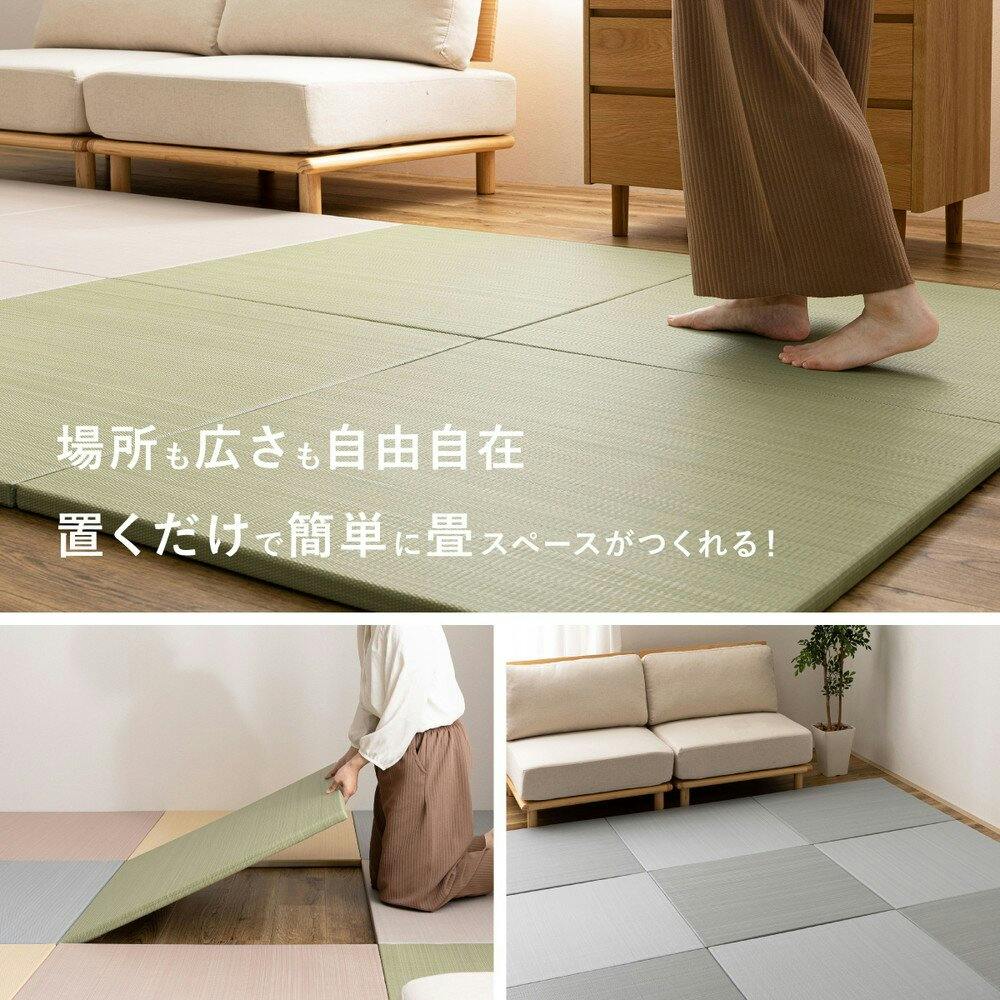 パイプ状にした樹脂素材を、い草と同じように織り上げた『い草風』の置き畳。水に強く、ジュースなどをこぼしてもさっと拭き取れるから汚れても安心。子どもやペットのいるご家庭におすすめです。ちょっとした隙間スペースを有効活用できるのでキッズ向けのプレイマットからシニアのお昼寝、お父さんお母さんのごろ寝スペースまで使い方はいろいろ。