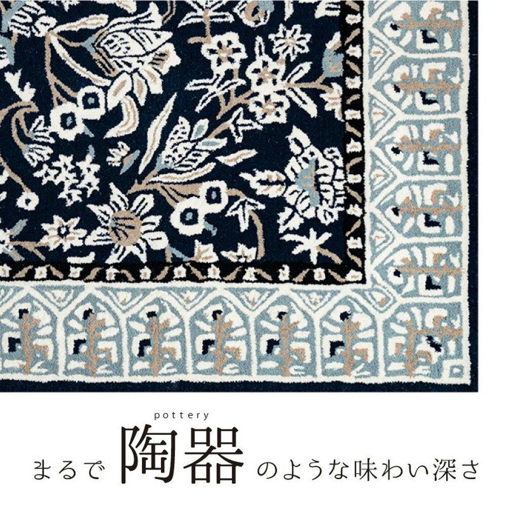 萩原 HAGIHARA ウール100%の手づくりラグマット ポタリー50×80ネイビー 270096410 4955872941776【別送品】