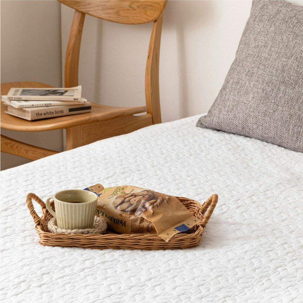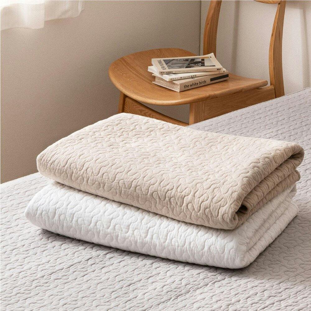 コットン100%で赤ちゃんの肌にもやさしく、中綿が入ったキルティング生地でふわっとやわらかな肌ざわりの敷きパッド。よくあるゴムバンド式のものだと、使っていくうちにゴムが伸びてゆるくなったり外れたりと大変ですが、こちらはゴムバンドなしで裏面に滑り止めが付いているからズレにくく、見た目もすっきり。