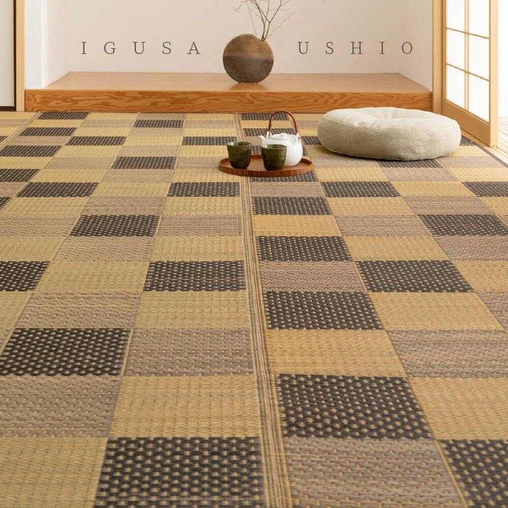 HAGIHARA 裏付き 市松柄 い草カーペット うしお 江戸間6畳 グリーン 4955872661315 81897960【別送品】