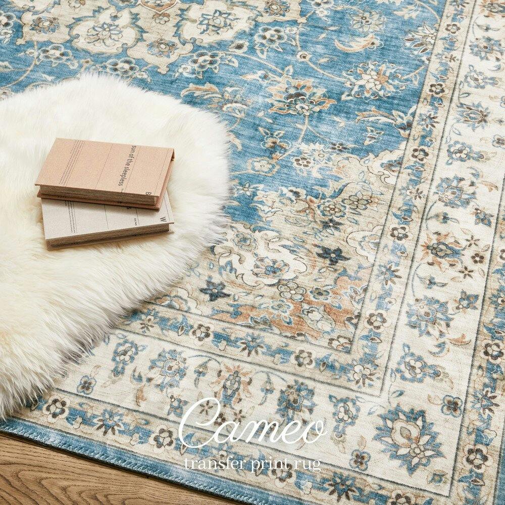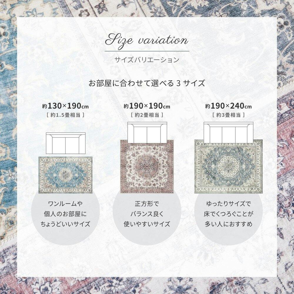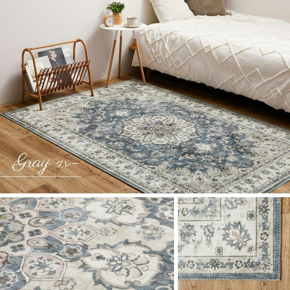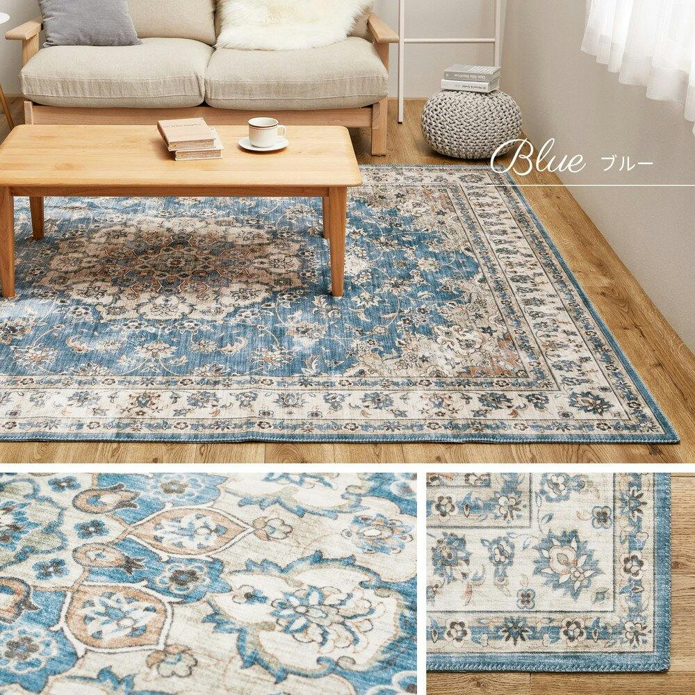 小さな模様や、ヴィンテージのようなかすれ感を細部までプリントで表現した、まるで高級ラグのような一枚。肌触りの良いフランネル生地で、やわらかくなめらか。短毛でお手入れしやすく、汚れてもで洗えるのでいつも清潔にお使いいただけます。裏面は滑り止め付きで、フローリングの上でもラグがズレにくく安心。ホットカーペット・床暖房に対応しており、オールシーズンで使えるラグです。