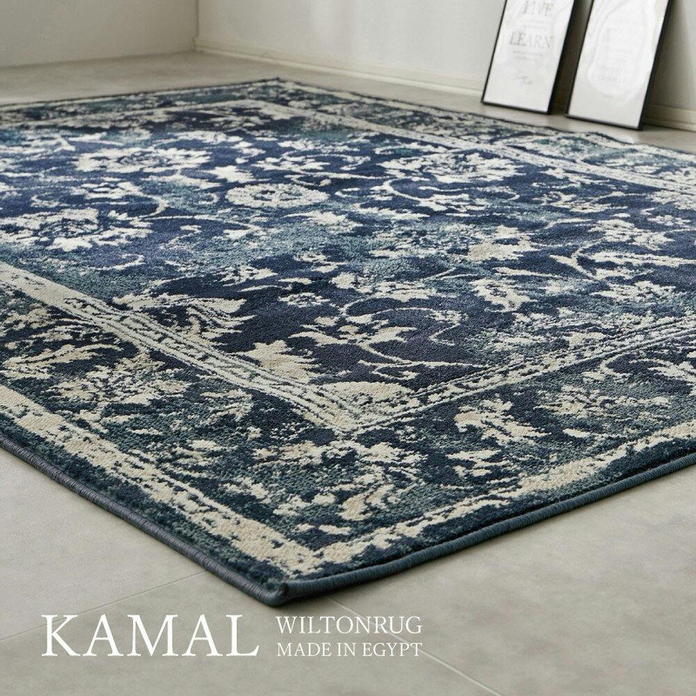 アラベスク調のデザインがインテリアのアクセントに。ウィルトン織で仕立てることにより、耐久性のあるカーペットになりました。折り畳んでの出荷になります。