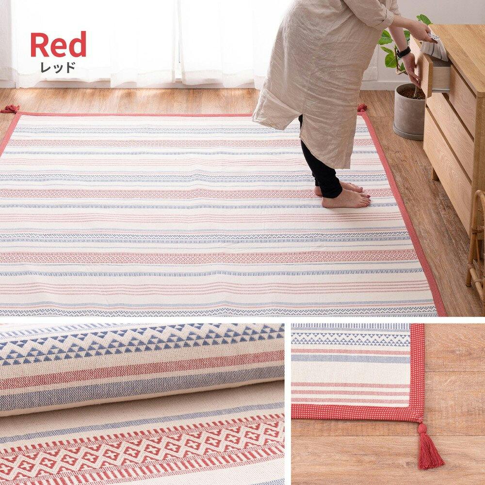 さらっとした踏み心地とインド綿ならではの素朴な仕上がりが魅力のラグ。四隅に付いたフサ(タッセル)でおしゃれ度アップ!吸湿発乾性が良く年中使えるタッチ感もインド綿の人気の秘密です。お客様のご要望に応えて、すべり止め付きを開発しました!