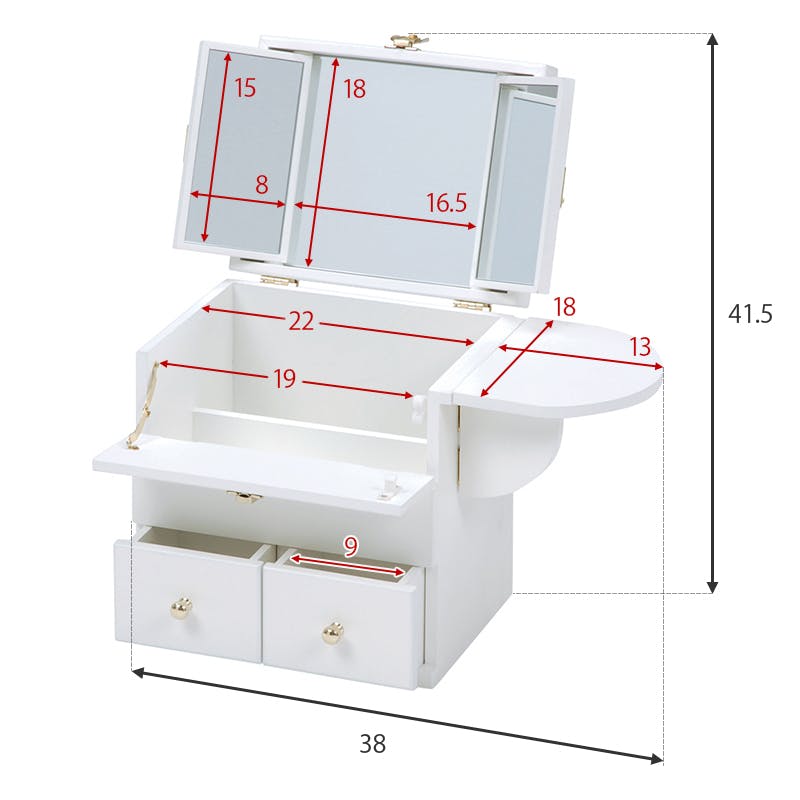 ■商品外寸サイズ:(約)幅26×奥行19×高さ31cm■内寸及び補足説明・ 引出内寸:(約)幅9×奥行8×深さ7cm・ 収納部内寸(奥):(約)幅22×奥行7×高さ21cm・ 収納部内寸(手前):(約)幅19×奥行8×高さ12cm