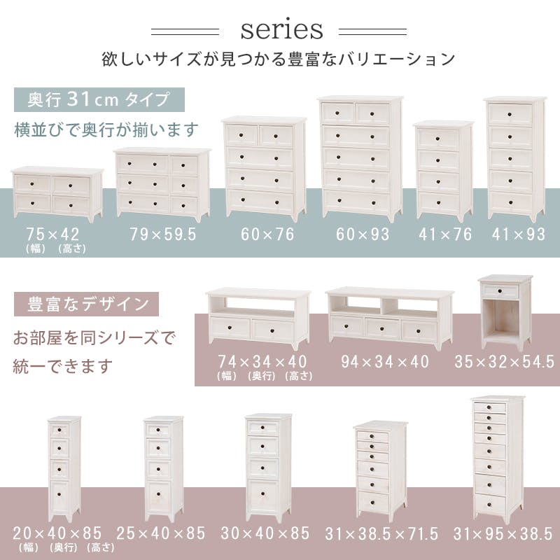 萩原スリーアイ HAGIHARA サイドチェスト MCH-5479AW アンティークホワイト 4934257218528【別送品】