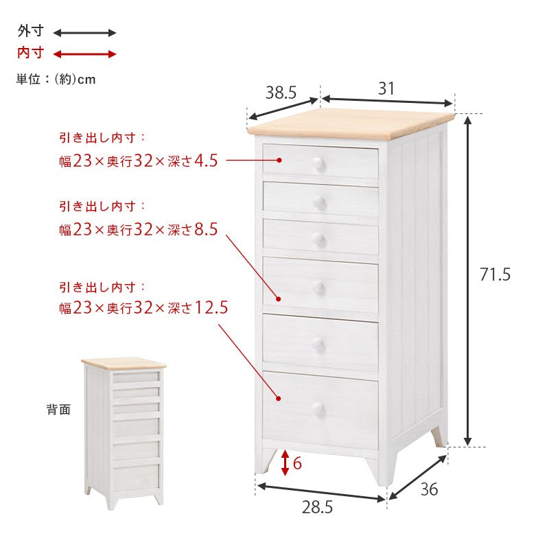 ■商品外寸サイズ:(約)幅31×奥行38.5×高さ71.5cm■内寸及び補足説明・ 引出内寸(小):(約)幅23×奥行32×高さ4.5cm・ 引出内寸(中):(約)幅23×奥行32×高さ8.5cm・ 引出内寸(大):(約)幅23×奥行32×高さ12.5cm