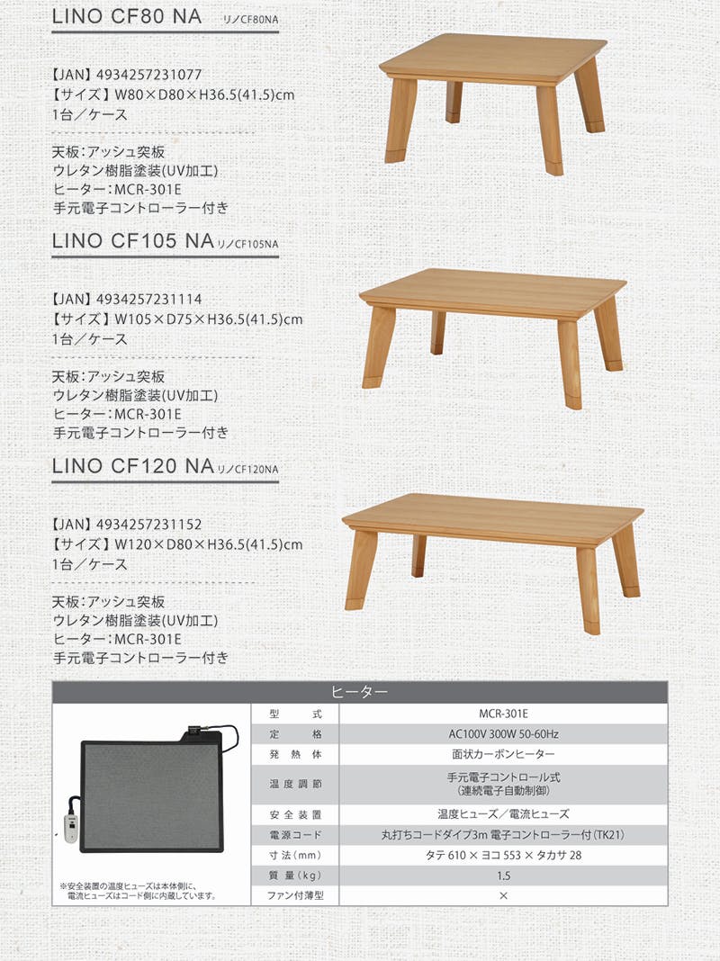 天板:ウォールナット突板 塗装:ウレタン樹脂塗装(UV加工) ヒーター:MCR-301E カーボンフラットヒーター(手元電子コントローラー)、原産国:マレーシア製