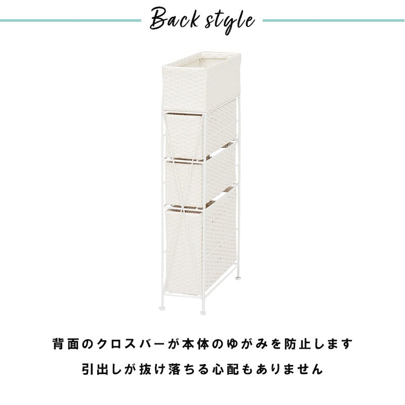 ■商品外寸サイズ:(約)幅15.5×奥行40.5×高さ80cm■内寸及び補足説明・アジャスター付<br>・カゴ部内寸:約幅12×奥行37×高さ13cm<br>・引出し内寸(浅):約幅10×奥行37×高さ13cm<br>・引出し内寸(深):約幅10×奥行37×高さ26cm<br>