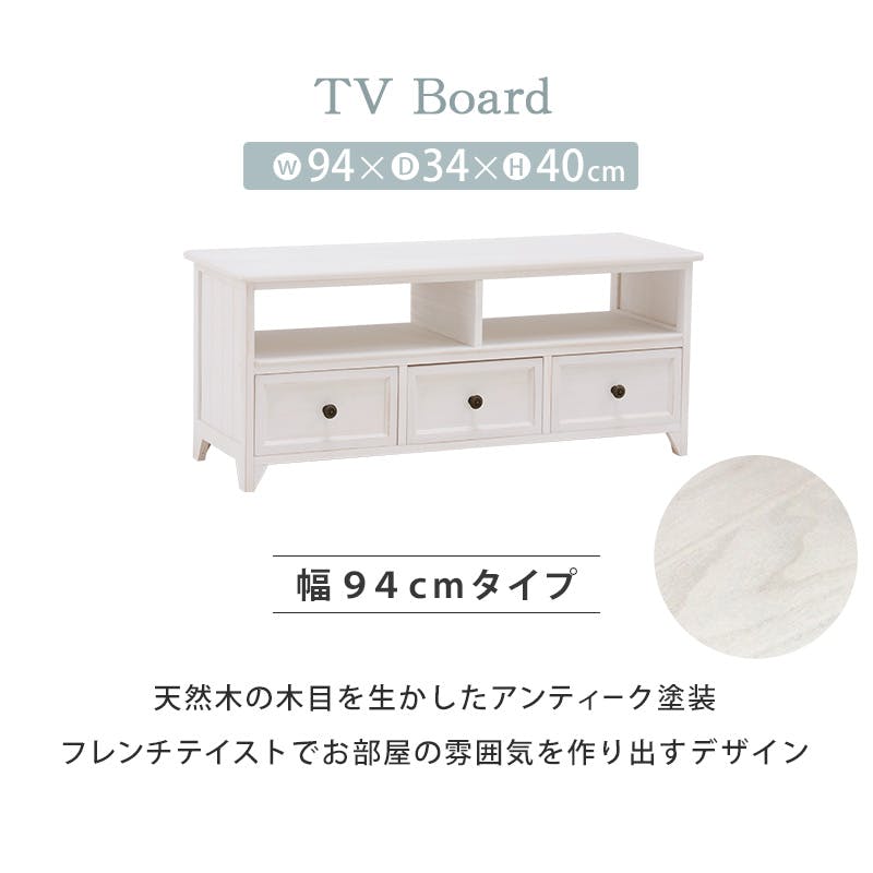 萩原スリーアイ HAGIHARA TV台 MTV-5383AW アンティークホワイト 幅94cm 4934257248761【別送品】