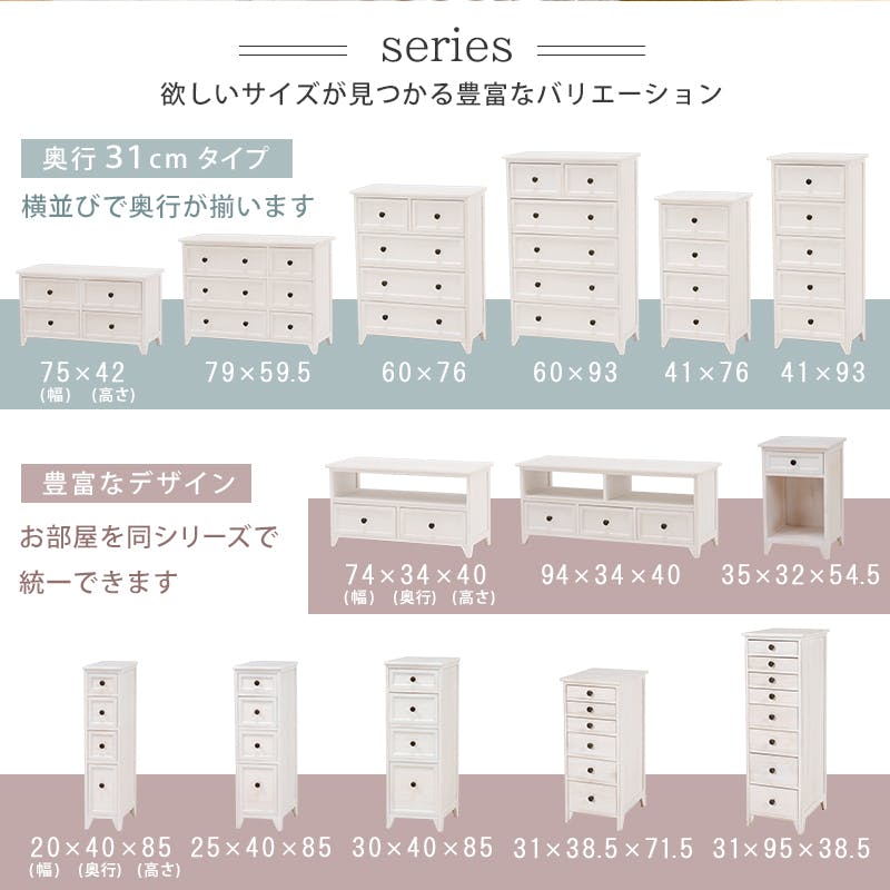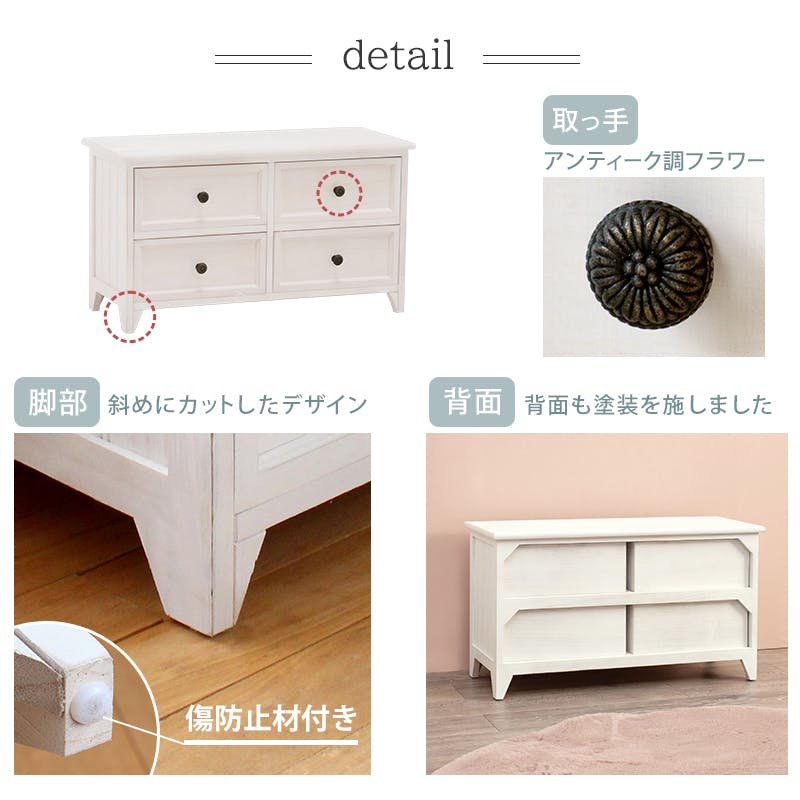 • 萩原スリーアイ HAGIHARA チェスト MCH-5378AW アンティークホワイト 4934257248846【別送品】