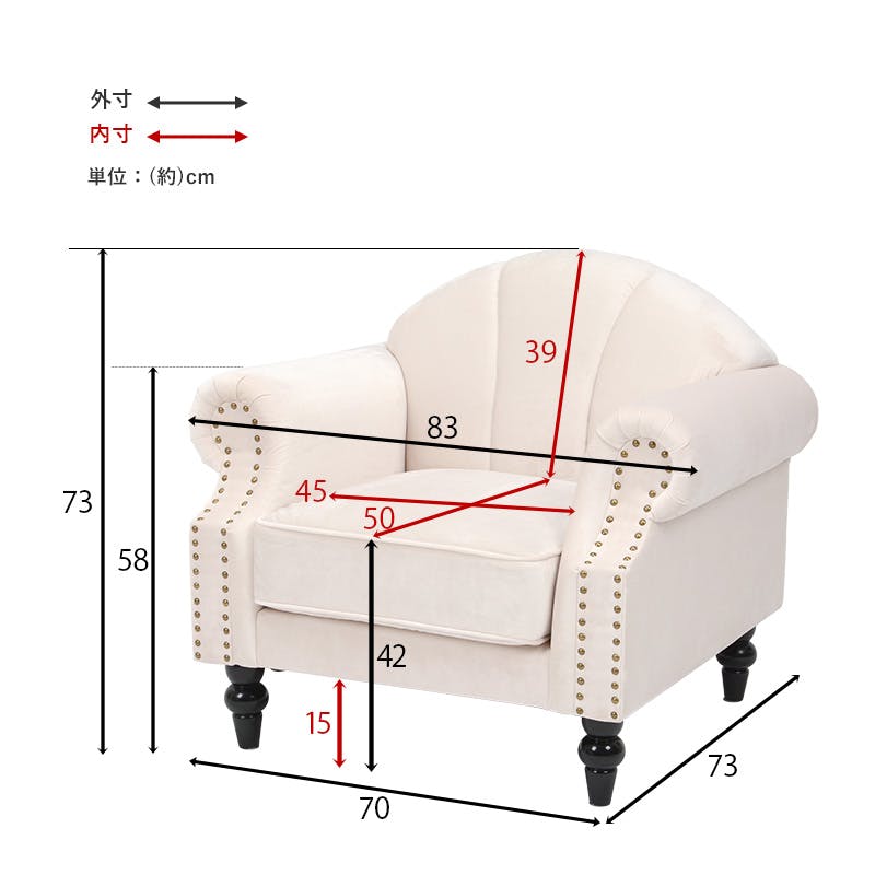 ■商品外寸サイズ:(約)幅83×奥行73×高さ73×座面高42cm■内寸及び補足説明・脚部組立式・座面:Sバネ