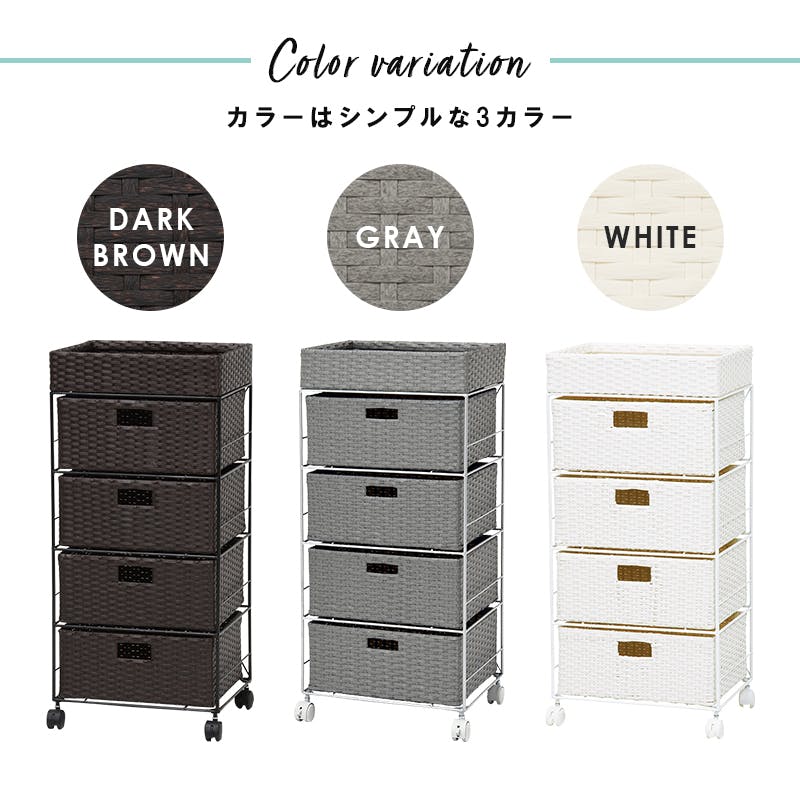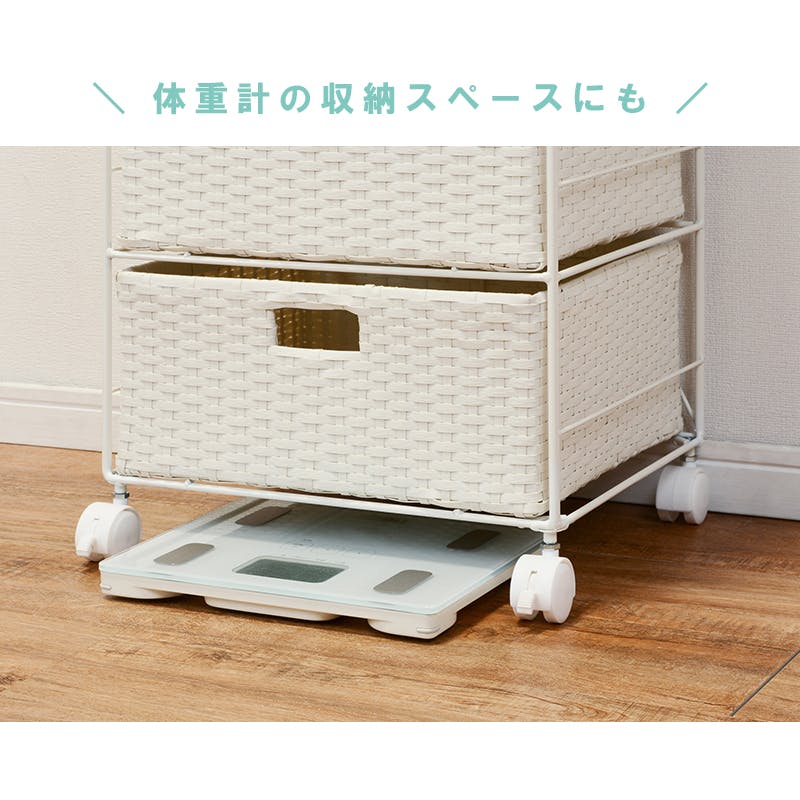 ■商品外寸サイズ:(約)幅40.5×奥行30.5×高さ85cm■内寸及び補足説明・キャスター付・カゴ部内寸:約幅37.5×奥行27.5×高さ8cm・引出し内寸:約幅35.5×奥行27.5×高さ15cm