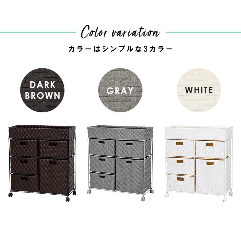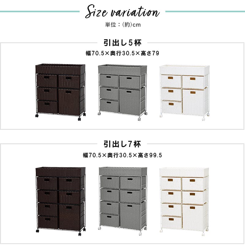 ■商品外寸サイズ:(約)幅70.5×奥行30.5×高さ79cm■内寸及び補足説明・キャスター付・カゴ部内寸:約幅67.5×奥行27.5×高さ11cm・引出し内寸(浅):約幅31×奥行27.5×高さ18cm・引出し内寸(深):約幅31×奥行27.5×高さ38cm