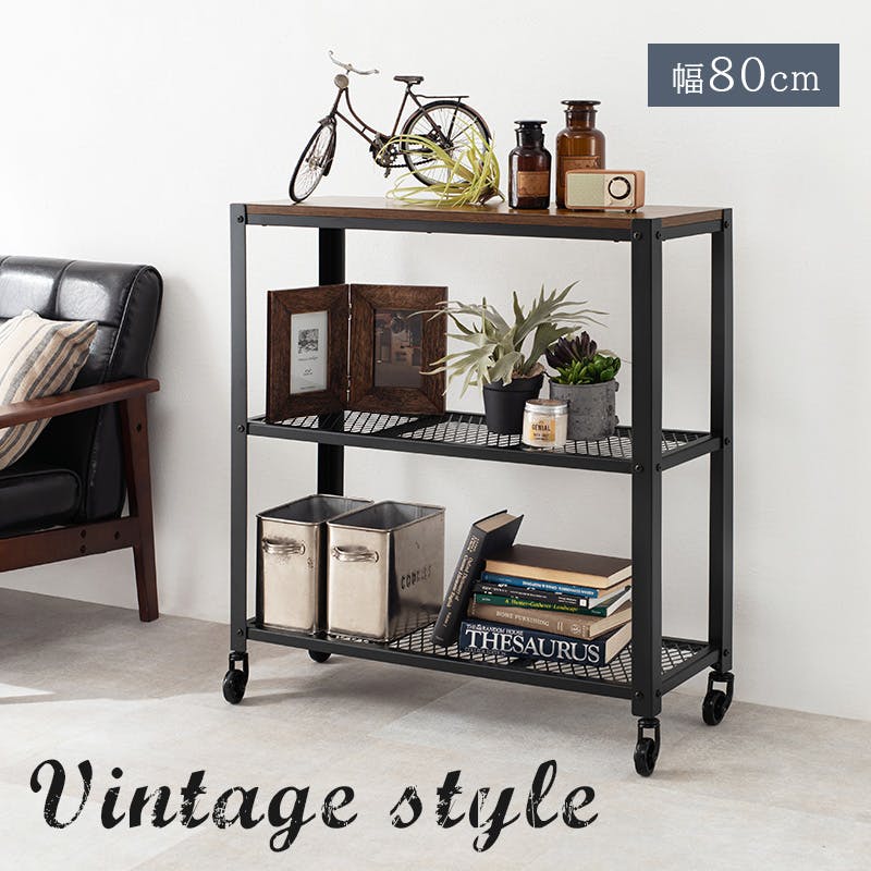 ■商品外寸サイズ:(約)幅80×奥行30×高さ87.5cm■内寸及び補足説明・組立式・キャスター付・天板:約幅80×奥行30cm・固定棚:約幅80×奥行30cm・棚間隔:約34cm
